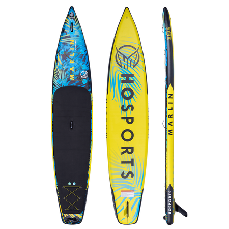 The Marlin iSUP by HO Sports is a high-end touring paddleboard designed with performance in mind. Utilizing our new Nano Stitch Construction, we’re able to build a board that is 30% stiffer and 30% lighter than standard inflatable paddleboards. The Marlin features a longer and narrower shape for high performance. This efficient, hydrodynamic shape will allow you to reach new speeds on your paddling adventures. The marine grade deck pad delivers a non-slip traction surface that is also comfortable underfoot. Another awesome feature of the Marlin is the dual double-x bungee zones which double your storage capacity by allowing you to store gear on the front and the back of your SUP. The oversized, single center fin provides excellent tracking as well as lateral stability. You will love the front loading storage and carry bag which is not only comfortable to carry but has plenty of room for the SUP, the Dual-Action hand pump and the paddle. Get yourself a Marlin and let your adventures begin.