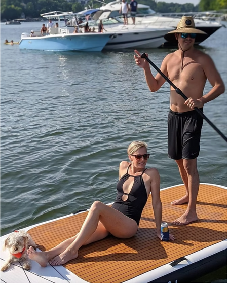 Use this paddleboard for the ultimate family and friends paddleboarding adventure or as an inflatable floating dock or water pad. Designed for 1 to 4 paddlers, this giant multi-person SUP guarantees endless fun on the water!
