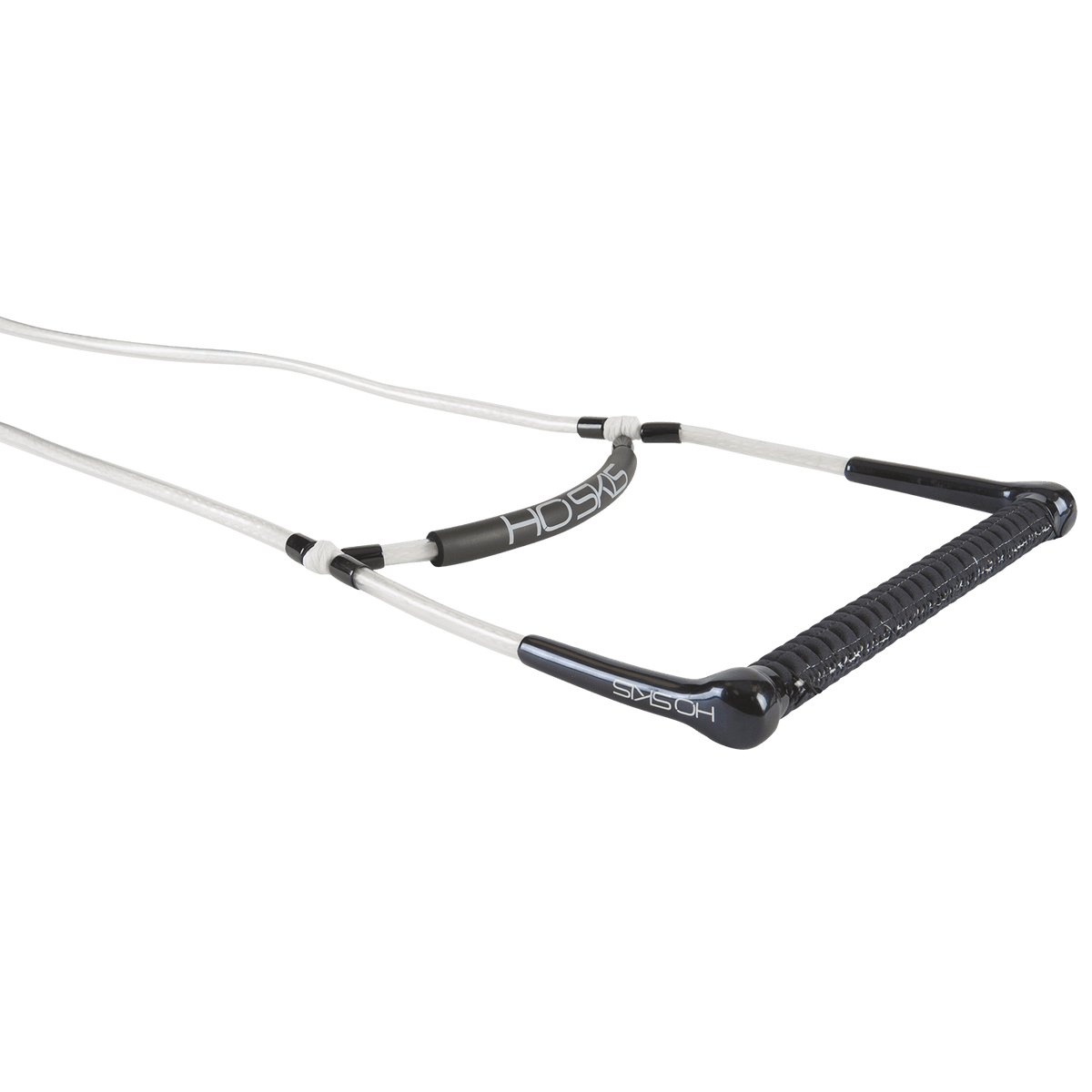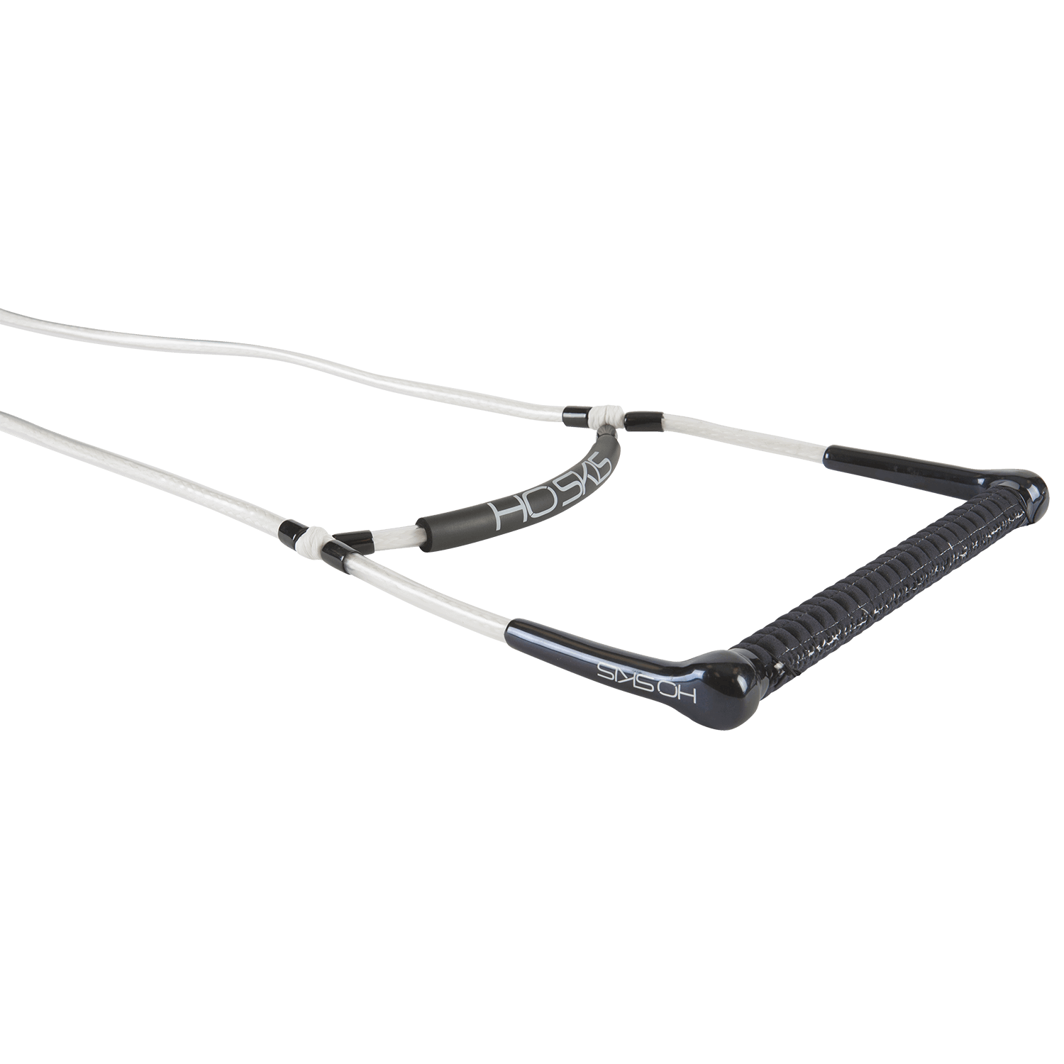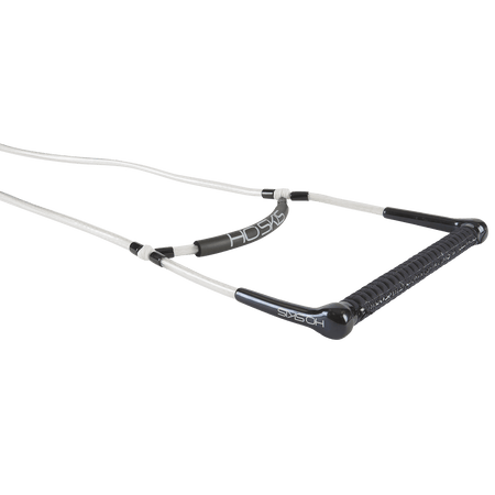 Designed for those looking to master the one ski deep water start, the Elite Deep V Handle features a wakeboard style soft grip cubic stitch pattern that gets tackier when wet. The skier places their ski tip inside the utra-wide “deep V” area between the handle and rope connection, which cradles the ski tip, keeping it centered to help with learning proper body position for easy get-ups. It’s coated rope prevents abrasion caused by ski friction while the foam floats make it easy to locate atop the water. Available as a package with a 5 section rope that features length adjustment loops or a 1 section mainline.