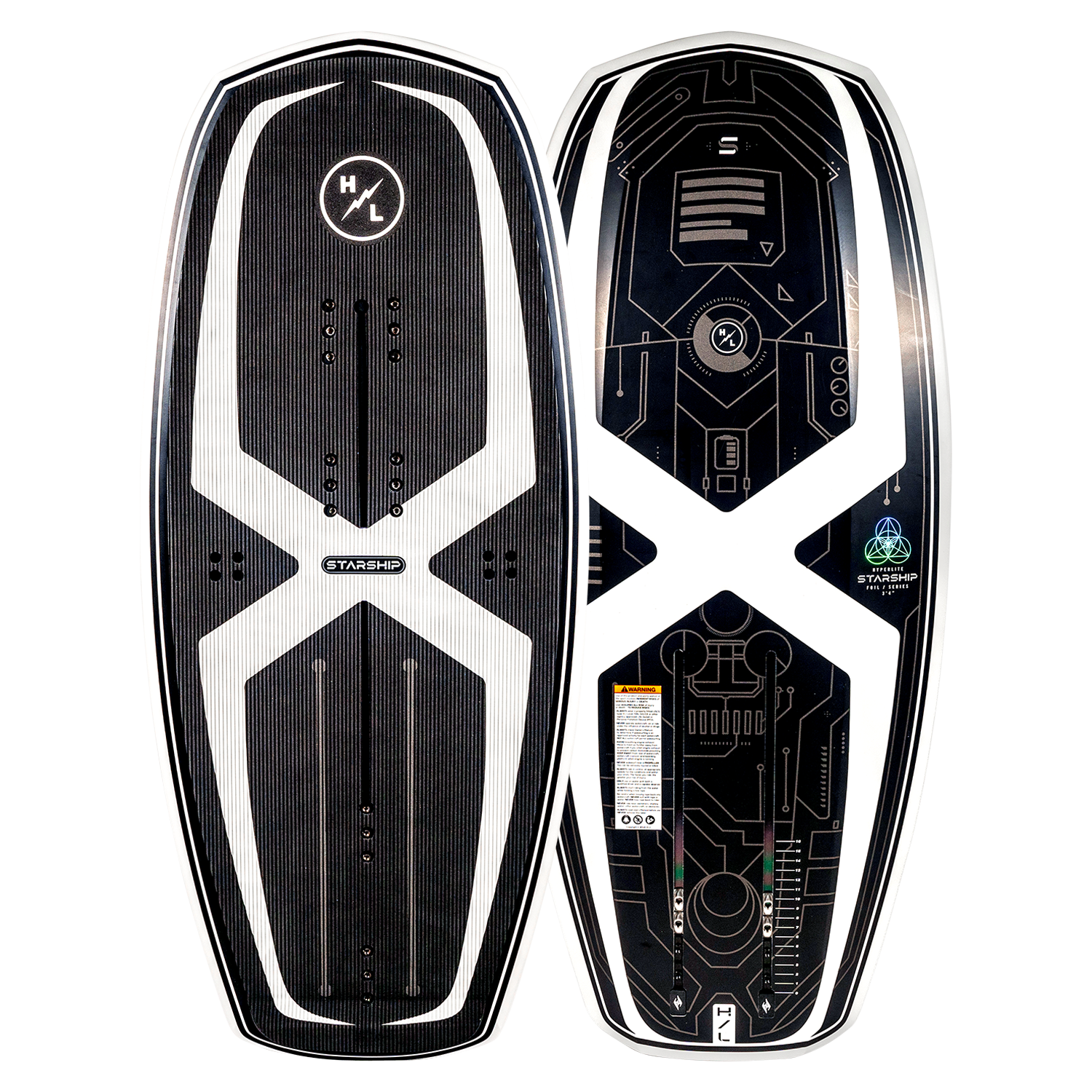 Tested by Team Hyperlite, the Starship Foil Board Hits on all Key Features & Ride Characteristics. Hyperlite’s new foil board, the Starship was designed for all wake foilers, whether it’s your first go or you’re advancing into pumping around the lake or high end maneuvers off the wake. Durashell Construction and our EPS Core keep the Starship light under foot for effortless gliding and flight. Concave top deck increases edge control and enjoy the comfy full deck EVA traction pad. The Starship comes equipped with foot straps for added control, multiple placements allows you to customize this ride. Most importantly the Starship can be paired with any Hyperlite foil assembly, including past kits and our new Raptor & Falcon kits.