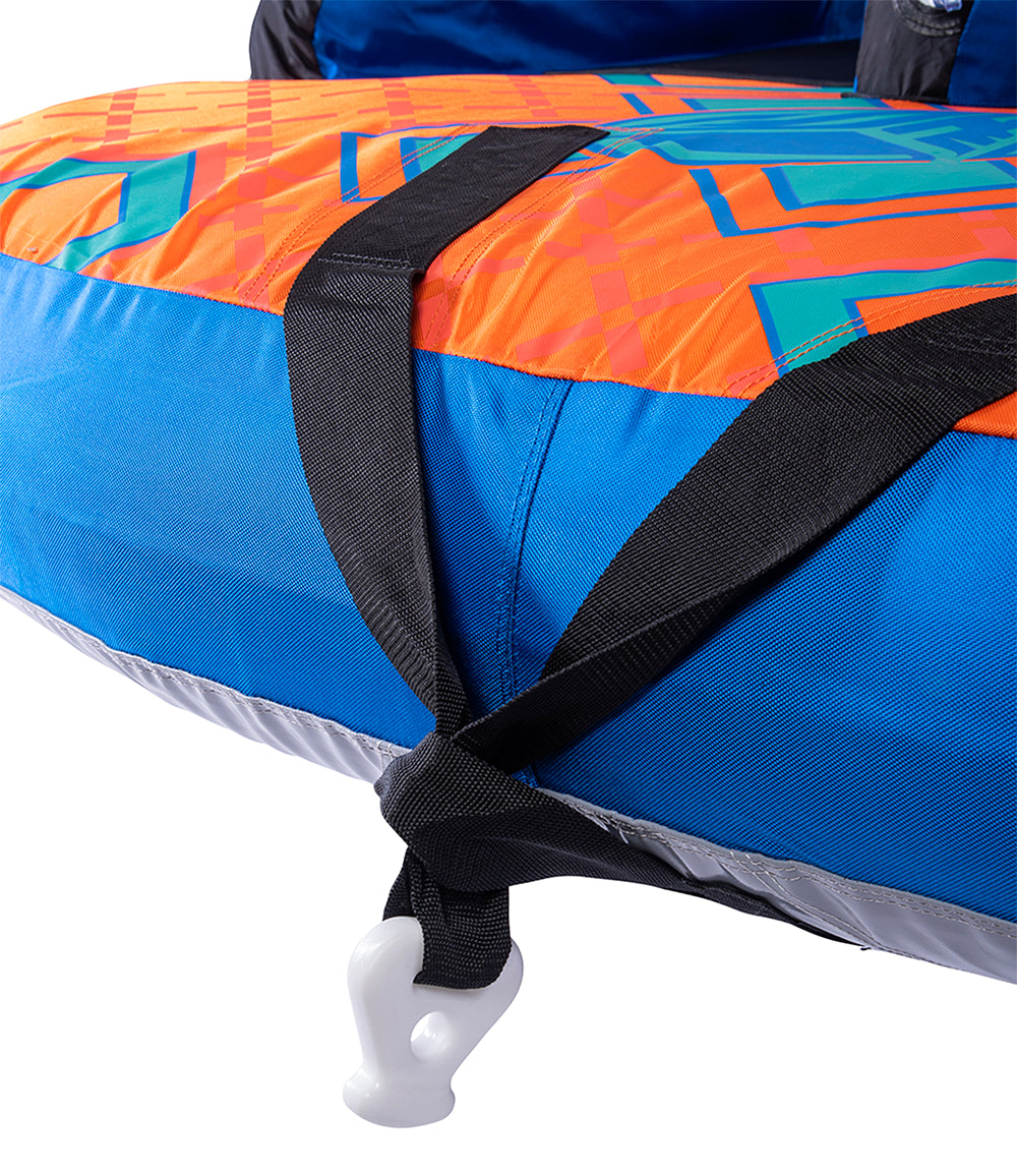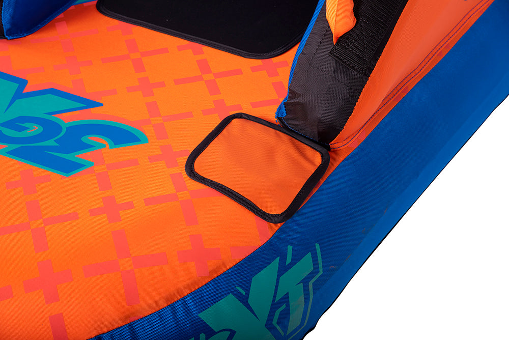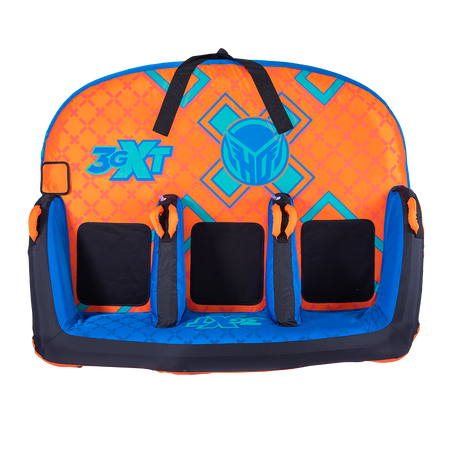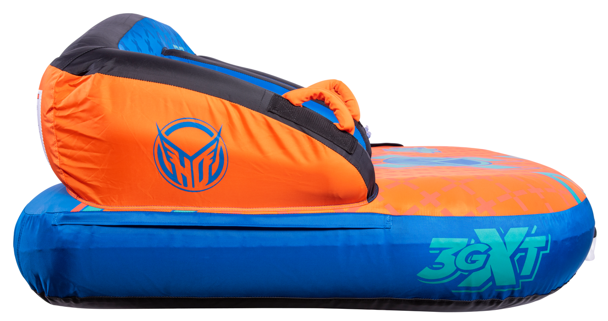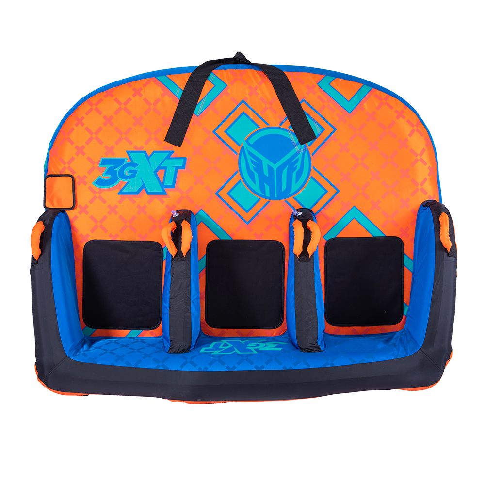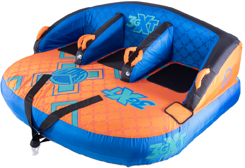The name says it all – 3GXT. XT stands for Extra Tough. We spared no expense with this towable tube and we stand behind it with our INDUSTRY FIRST 3 YEAR LIMITED WARRANTY. Our customers asked for an “EXTRA TOUGH” version of our best seller 3G and we answered by building the XT with the thickest and toughest materials money can buy. Grab 2 of your friends and sit down in the ergonomic, lounge style seats OR flip the tube around and kneel on the neoprene pads while towing the tube from the opposite side…either way works great! Made from only the finest materials and backed by our 3 year limited warranty, the 3GXT will keep you where you want to be…on the water!