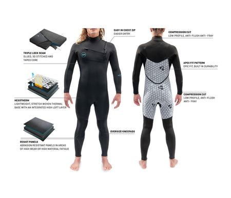 THE MEN’S MISSION CHEST ZIP FULL SUIT 4/3 SETS A NEW BENCHMARK IN WETSUITS: UNREAL STRETCH, FIT, WARMTH, AND DRYING TIME, WITH UNMATCHED DURABILITY.