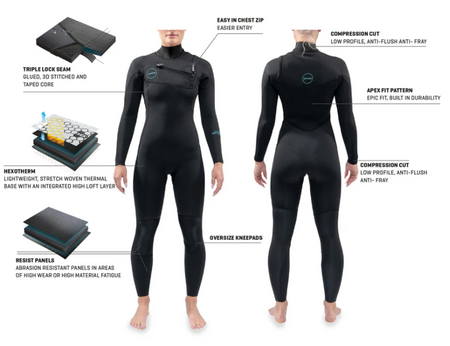THE WOMEN’S MISSION CHEST ZIP FULL SUIT SETS A NEW BENCHMARK IN WETSUITS: UNREAL STRETCH, FIT, WARMTH, AND DRYING TIME, WITH UNMATCHED DURABILITY.