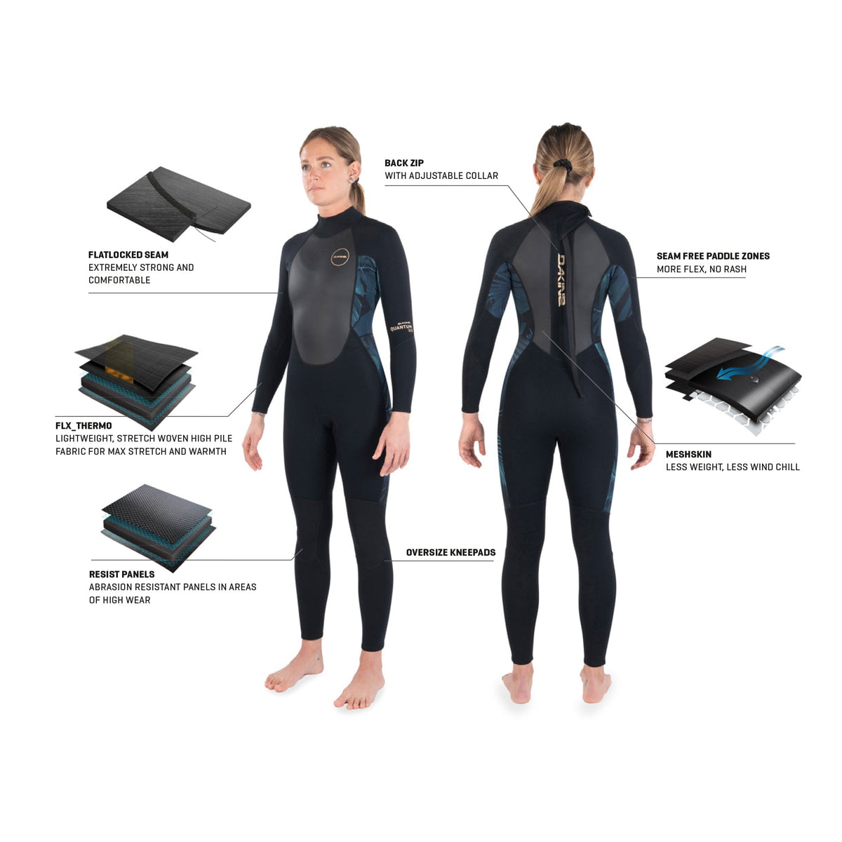 We’ve cracked the performance code with our Quantum line of women’s wetsuits, ending the era in which high performance and flexibility equate to a compromise in durability. Our game-changing approach starts with quality materials like limestone-based neoprene and specially developed insulation with stretch zones in high-movement areas—what we call our all-new Apex Fit pattern. The upper-body panels are internally reinforced with our flexible THERMO lining and wind-resistant mesh-skin on the chest and back to prevent windchill in exposed areas. The seams of the Women’s Quantum Back-Zip Full Suit 3/2MM F/L are flatlock stitched for extra strength, and the back-zip design allows for easy entry and exit so you won’t waste any energy wrestling with your suit and can save it for the lineup. The Quantum will change your expectation of what a wetsuit can be.