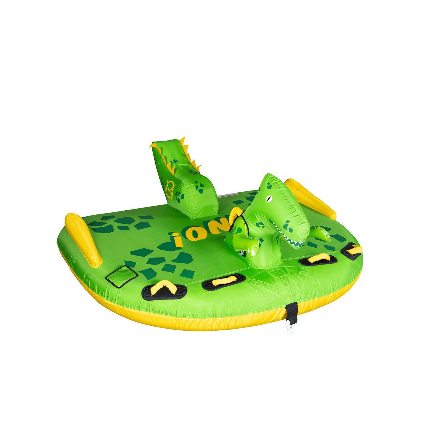 The Dino is a 3 rider towable tube built for fun days on the lake. The Dino can handle up to 3 riders but it can be ridden by 1, 2 or 3. The center rider sits on the deck of the tube while the outside riders lay in the prone position. Built with only the finest materials and guaranteed with our 1 year warranty, this tube will keep you where you want to be…on the water.