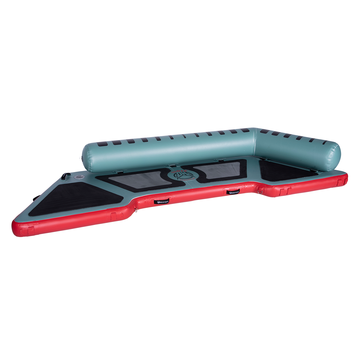 The Hawaii Atoll Series by HO Sports in the Ultimate Inflatable Lounge you need for those epic lake parties. Outfitted with pontoon style backrests for comfortable lounging and a soft Marine grade EVA deck pad with nonslip traction surface, fill the seats with your friends, strap on a cooler and enjoy the summer like none other. The Atoll’s work great solo, but just like the island chain, they’re designed to connect to other Atolls for the ultimate group lounge party experience. Their easy to use connectors provide tight, secure connections between Atolls. The dual layer neoprene padded carry handles and 3.8mm Stainless D rings give you added versatility for easy linking to other floats, boats and anchors. The deck of the Atoll is built with 6” Thick, Durable, Welded Dropstitch Construction, so it’s seamless, stable and rigid at proper PSI. This heavy-duty material can withstand being bumped, scraped, dropped with low risk of damage. Atoll’s fold and roll for super compact for easy storage and transport when deflated. The “Big Atoll” comes in at 11.75’ x 6.5’, while the “Little Atoll is sized at 11.75’ x 3.5’. Forget the endless hand-pumping, each Hawaii Atoll comes with an Electric Pump with built in PSI gauge for super easy automatic inflation. Also included, a Carry-Tote for easy transport and a PVC repair kit. Start your own island party with the Hawaii Atoll inflatable lounges from HO Sports.