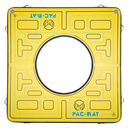 The Pac Mat by HO Sports is an inflatable 10’ x 10’ water mat that’s guaranteed to provide endless hours of fun for the entire family. Get your kids outside on the Pac Mat and they’ll be playing until the sun goes down. Practice your cannon balls through the 5’ center hole, play king of the Pac-Mat or make up your own game using the nostalgic, interactive graphics. Great flotation on the water, and springboard like bounce on land for gymnastics fun, the Pac Mat is great on and off the water! The stainless steel D-rings provide attachment points for anchoring. The Pac-Mat can also be fastened to a boat, dock or another inflatable. It’s 6” Thick Welded Dropstitch construction means it’s durable and rigid when inflated, and folds down for easy compact storage when not in use. Use the included electric pump for quick and easy inflation and deflation. The Pac-Mat will keep you and your family where you want to be…on the water.