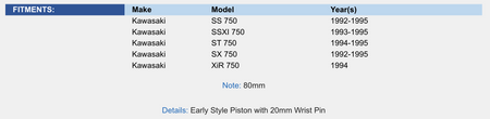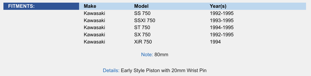Piston Kit; Kawasaki 750 92-95 Standard Platinum