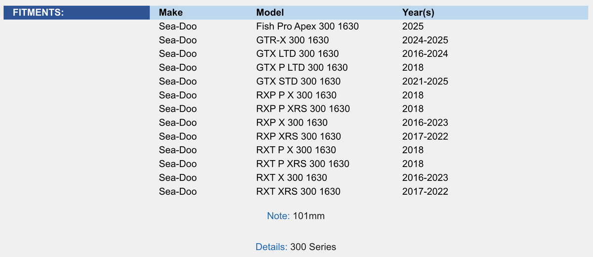 Sea-Doo 1630 4-Tec 300 Hp 16-25 1mm Over Platinum