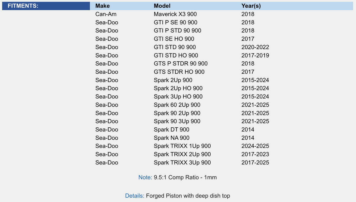 Sea-Doo / Can-Am 900 14-25 Platinum Dished 9.5:1 Compression