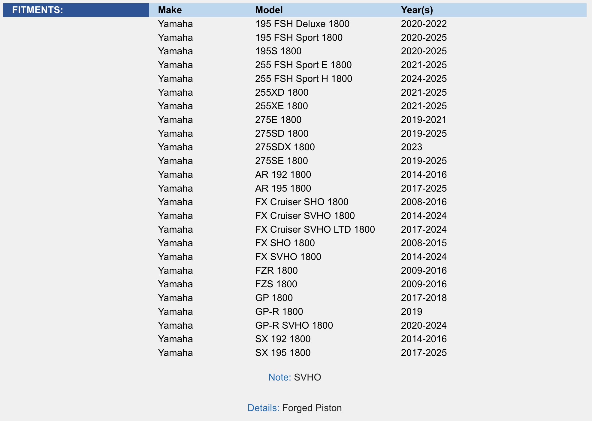 Piston Kit; Yamaha 1800 08-24 Standard Platinum