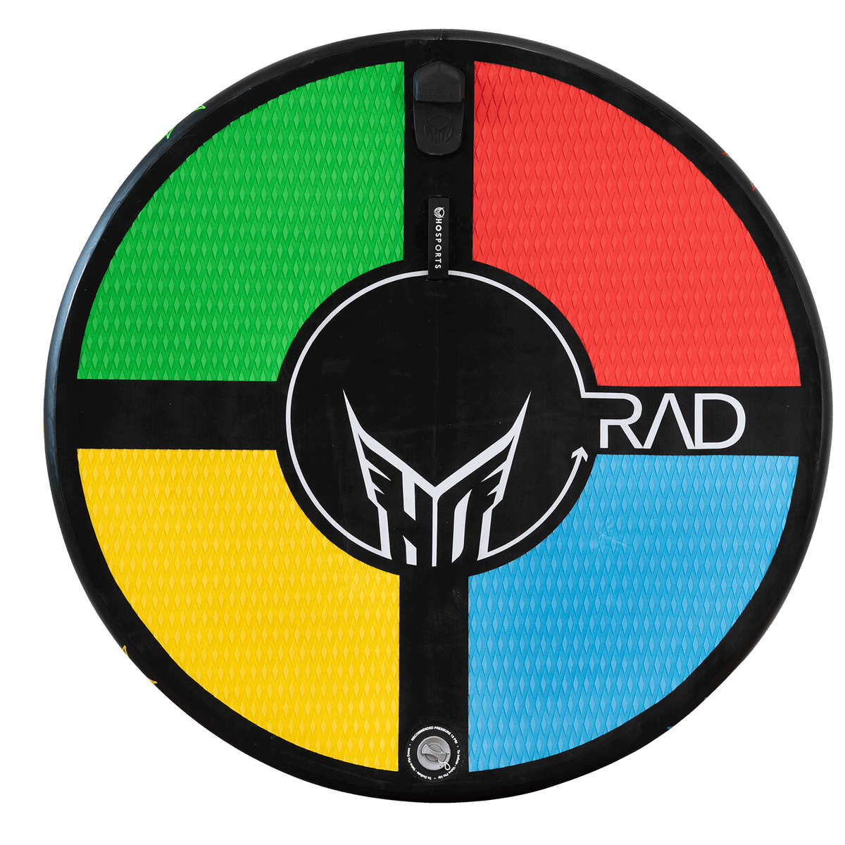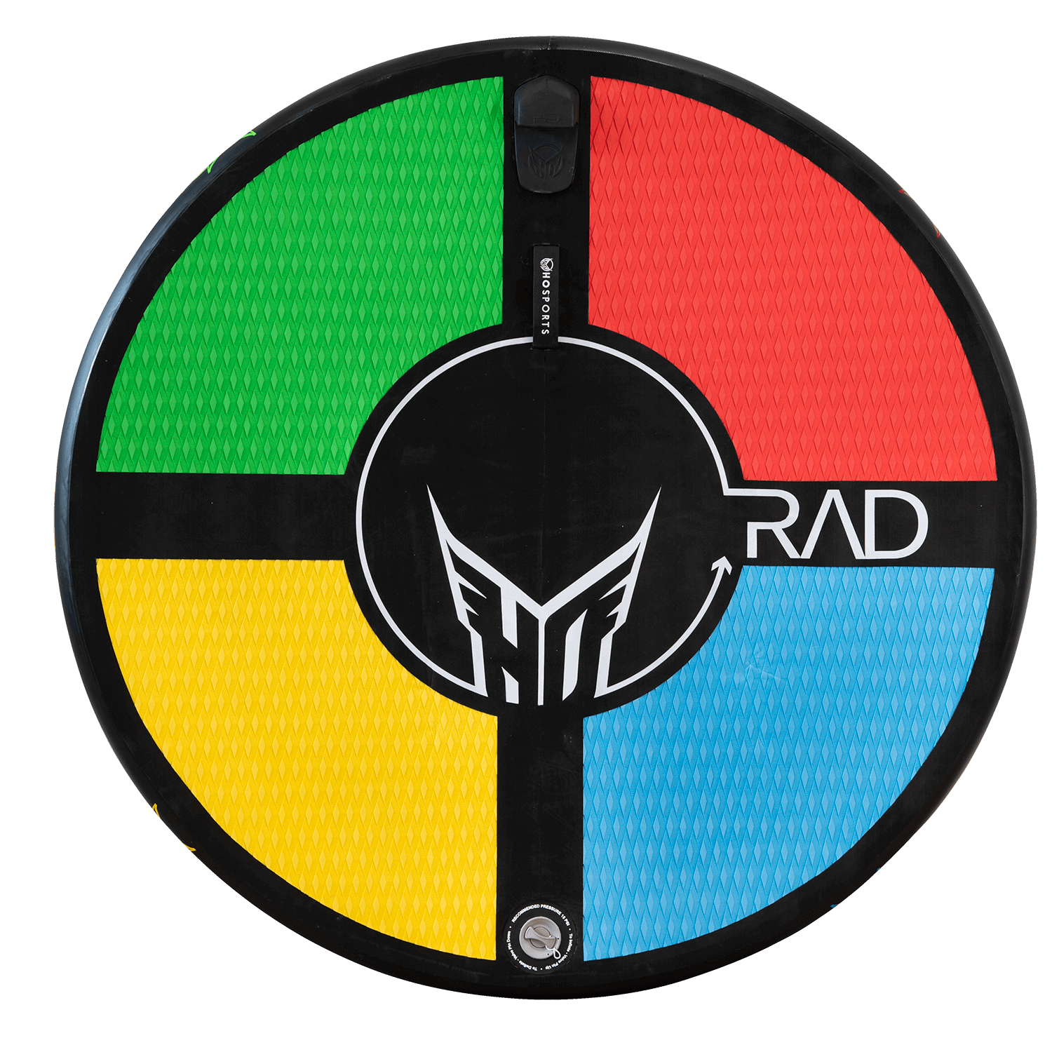 Before wakeboarding was invented, watersports pioneers of the 1960's experimented with objects to ride behind the boat. Some of the more successful riding devices were wooden discs. Grandpa would take a piece of plywood to his woodshop and cut it into a circular shape. The family would take turns 'discing' in between water ski sets. It was a great way to introduce people to riding behind the boat without the learning curve associated with waterskiing. 50 years later, we’ve combined the nostalgia of the past with the advanced materials and construction methods of today to give you the new RAD discs. Round Aquatic Devices (RADs) allow anyone, regardless of skill level, to participate in a day behind the boat. Everyone can get up on the 5’ RAD! You can put the handle in the soft EVA handle hook, sit, stand or kneel, and away you go. For a more advanced ride, go with the 4’ RAD or the even smaller 3’ RAD disc. The riding possibilities are endless, opening up a world of pure imagination for your friends and family. Fun for all ages, the RADs are guaranteed to turn some heads on your lake this summer.