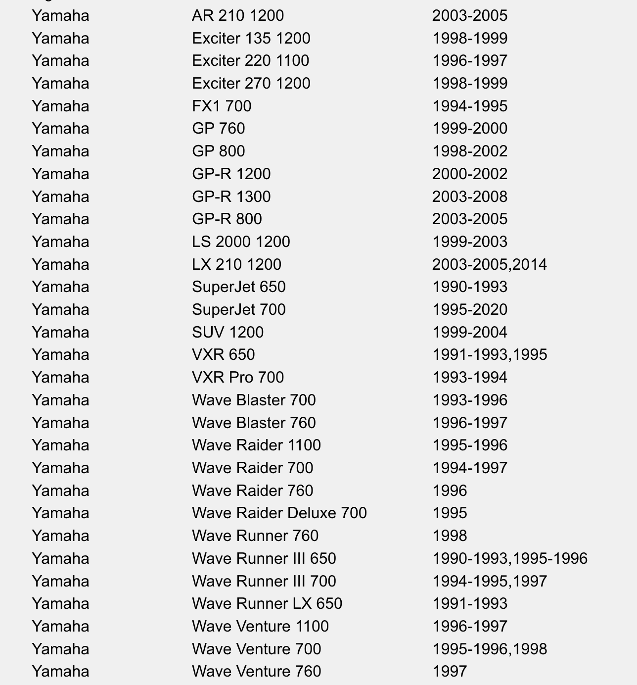 Kawasaki / Polaris / Sea-Doo / Yamaha 650 - 1300 87-20