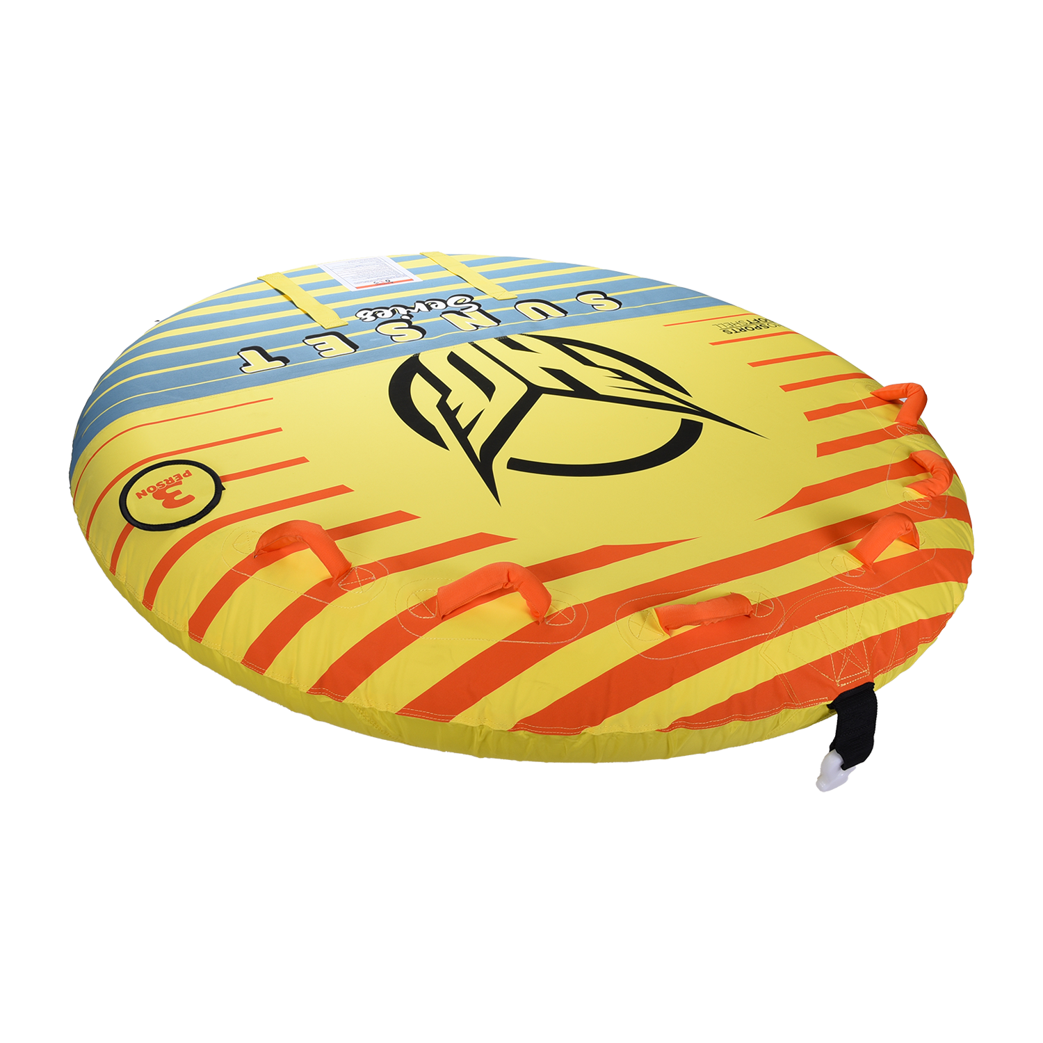 Traditionally, there has been very little difference between round, deck style tubes. You can buy one from any inflatable maker and they’re basically all the same. That is…until now. With the addition of HO Sports’ Shoftshell Technology, now you can tube all day without worrying about the abrasion or “tube rash” that you would get from a traditional nylon covered tube. This new technology is the best thing to happen to tubes since the introduction of the nylon cover. So, grab a friend or two and hop aboard this 3 rider deck tube and have fun out there!