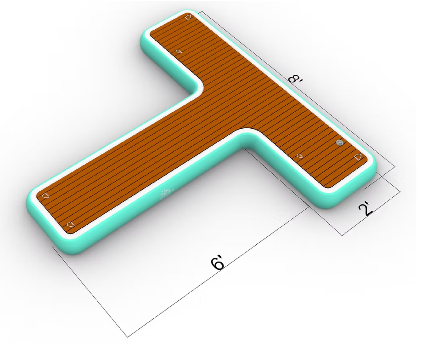Protect your PWC or boat from damage with our new T-Shaped Inflatable PWC Dock. Measuring 8’x8’ with an 8” thick platform and a 2’ wide walk area, this dock offers a convenient, stable space for your watercraft. Its compact design makes it lightweight and easy to stow away, while the premium anti-slip surface ensures firm footing for safe access.