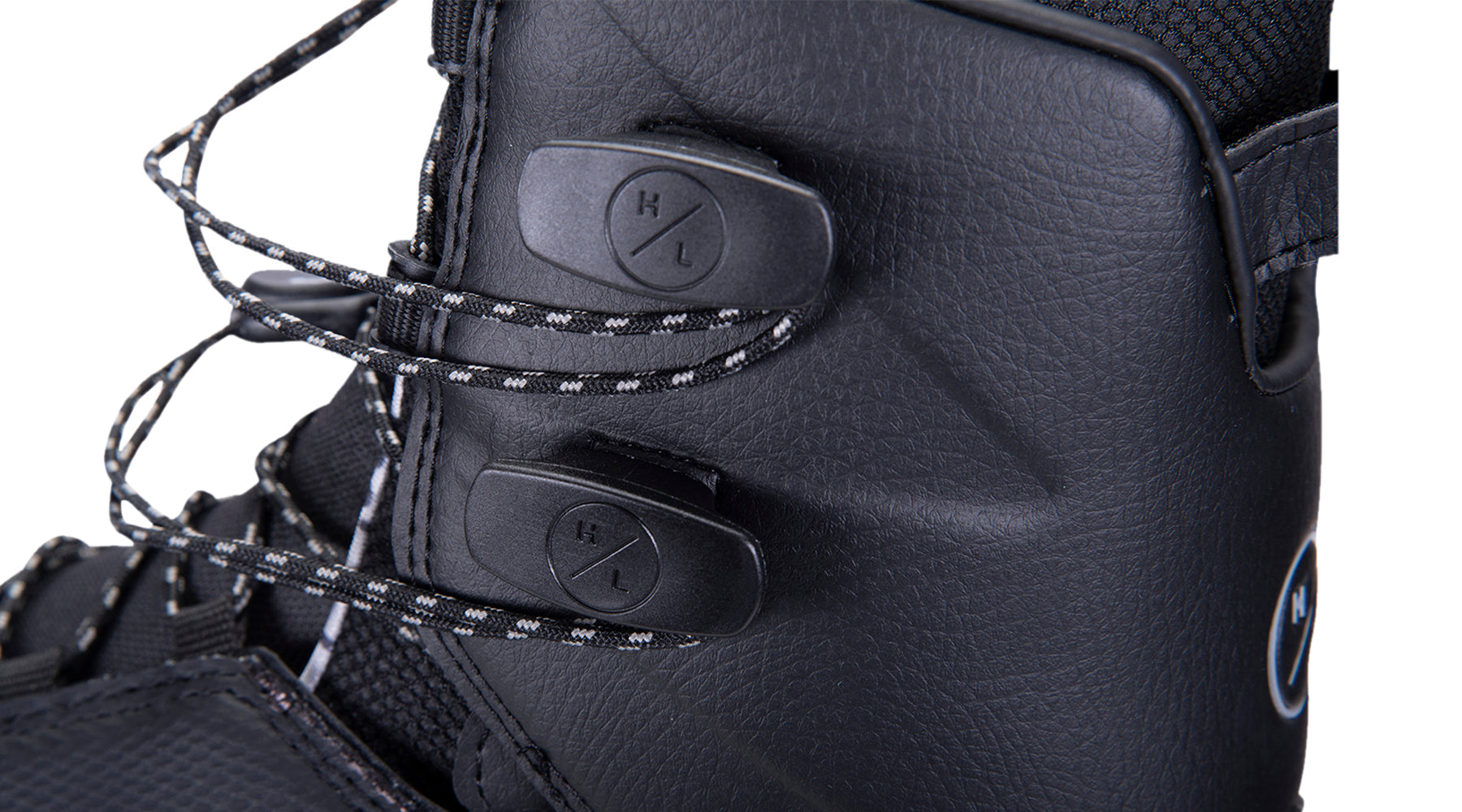 Shaun’s vision for the perfect plated binding has quickly become a team favorite, the Team X Binding built atop Hyperlite’s Fusion Plate System. If you’re a seasoned pro or just getting comfortable standing sideways, this is the perfect binding for you. The Team X closed toe binding offers mid-range support for the rider looking for a little extra flex with solid heel hold thanks to its Internal Ankle Harness. This feature pulls the rider’s foot into the heel pocket as the binding is laced for reduced lift. Dual quick cinch lace zones and seamless liner construction produce a great fit with no pressure points. Shaun asked for user friendly binding for beginners and experts alike, with great performance for a great price. Grab a pair of Team X Wakeboard Binding.
