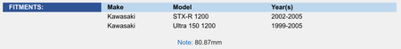 Kawasaki 1200 STX-R / Ultra 150 99-05 1mm Over