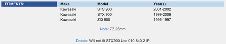 Kawasaki 900 STS / STX / ZXi 95-06 .25mm Over Platinum