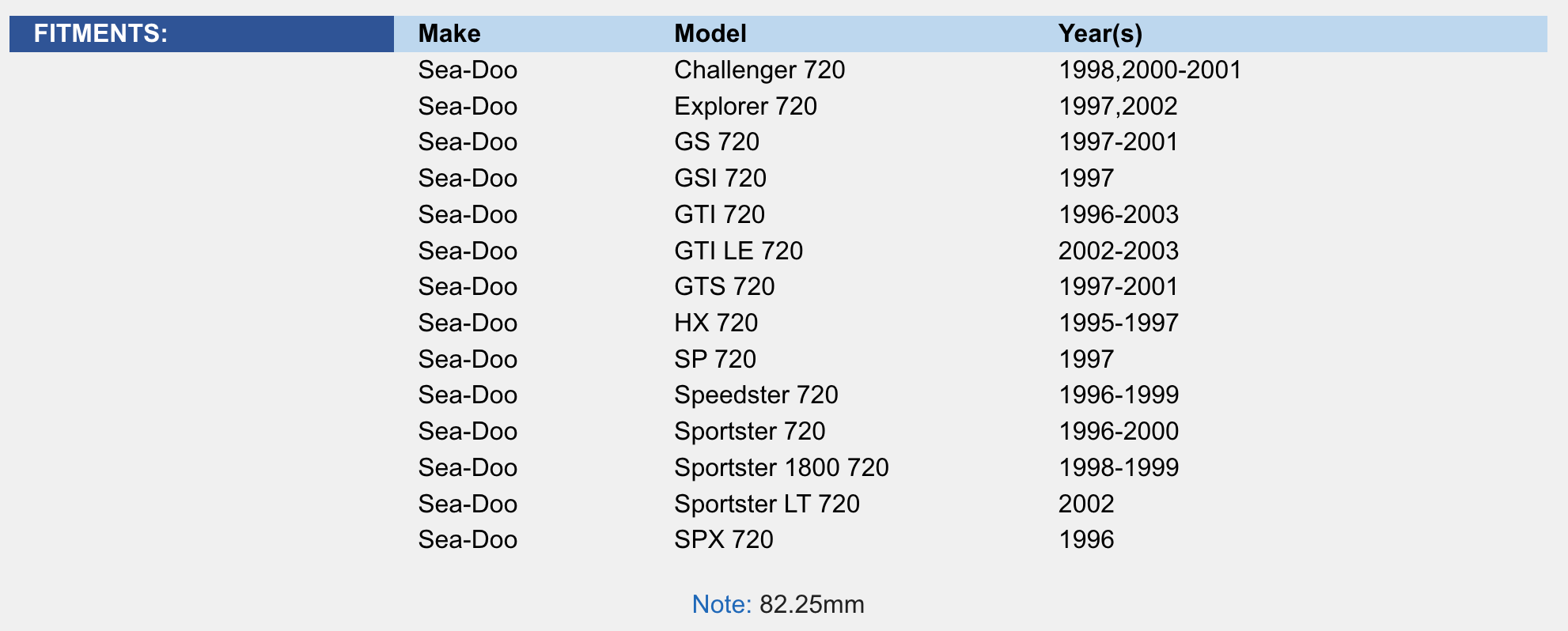 Sea-Doo 720 95-03 .25mm Over Platinum