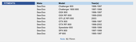 Sea-Doo 800 95-03 .75mm Over Platinum