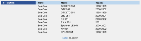 Sea-Doo 951 98-03 .75mm Over Platinum
