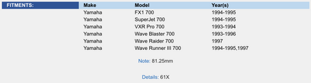 Yamaha 700 93-97 .25mm Over Platinum