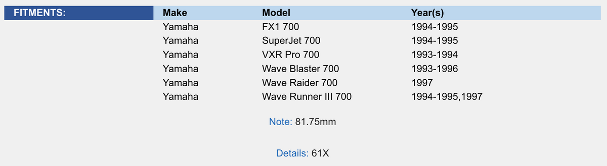 Top End Rebuild Kit; Yamaha 700 93-97 .75mm Over Platinum