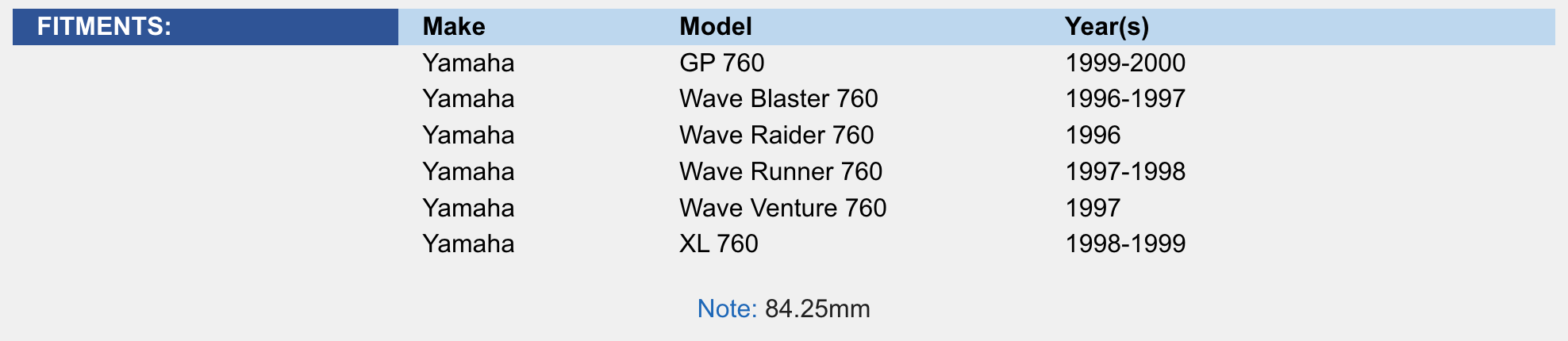 Yamaha 760 96-00 .25mm Over Platinum