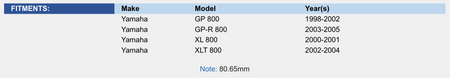 Top End Rebuild Kit; Yamaha 800 98-05 .75mm Over Platinum