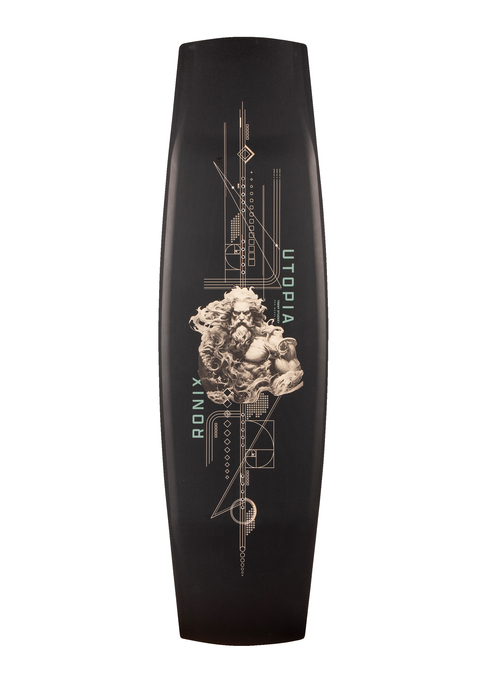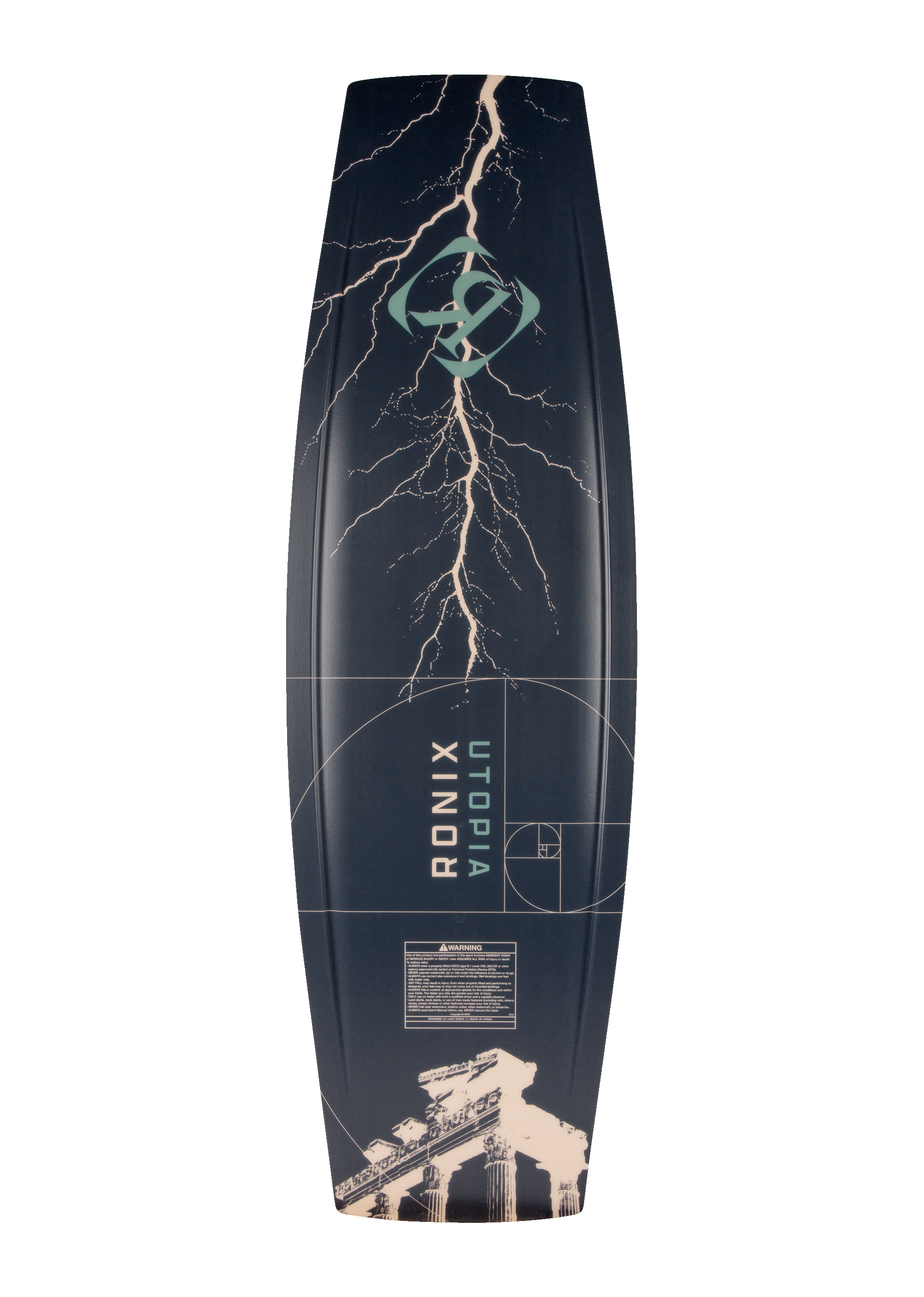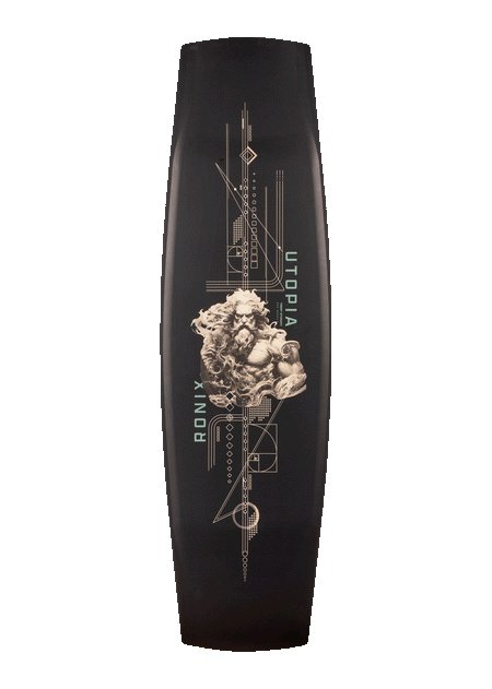 Trent Stuckey has been behind the scenes working on his first signature park board for years. Trent was looking for a conventional construction but wanted to have the board taper through the tip and tail to the thinnest profile of any Ronix board. The result is a board that loads into a tip or tail press easier than anything we have ever ridden which works well for both beginners and seasoned pros. A relaxed rocker line in a class all by itself which allows for speed on the water and stability on features, and the curve between the boots provides softer landings. The channels are pulled in which means you will not feel them while riding a feature. The Utopia also has a tip/tail concave to lock onto those pipe features as well as enhance on water performance. Trent also wanted finite stance options, so the inserts are spaced 25% closer together and we added 4 additional inserts for a greater spread of stance widths.